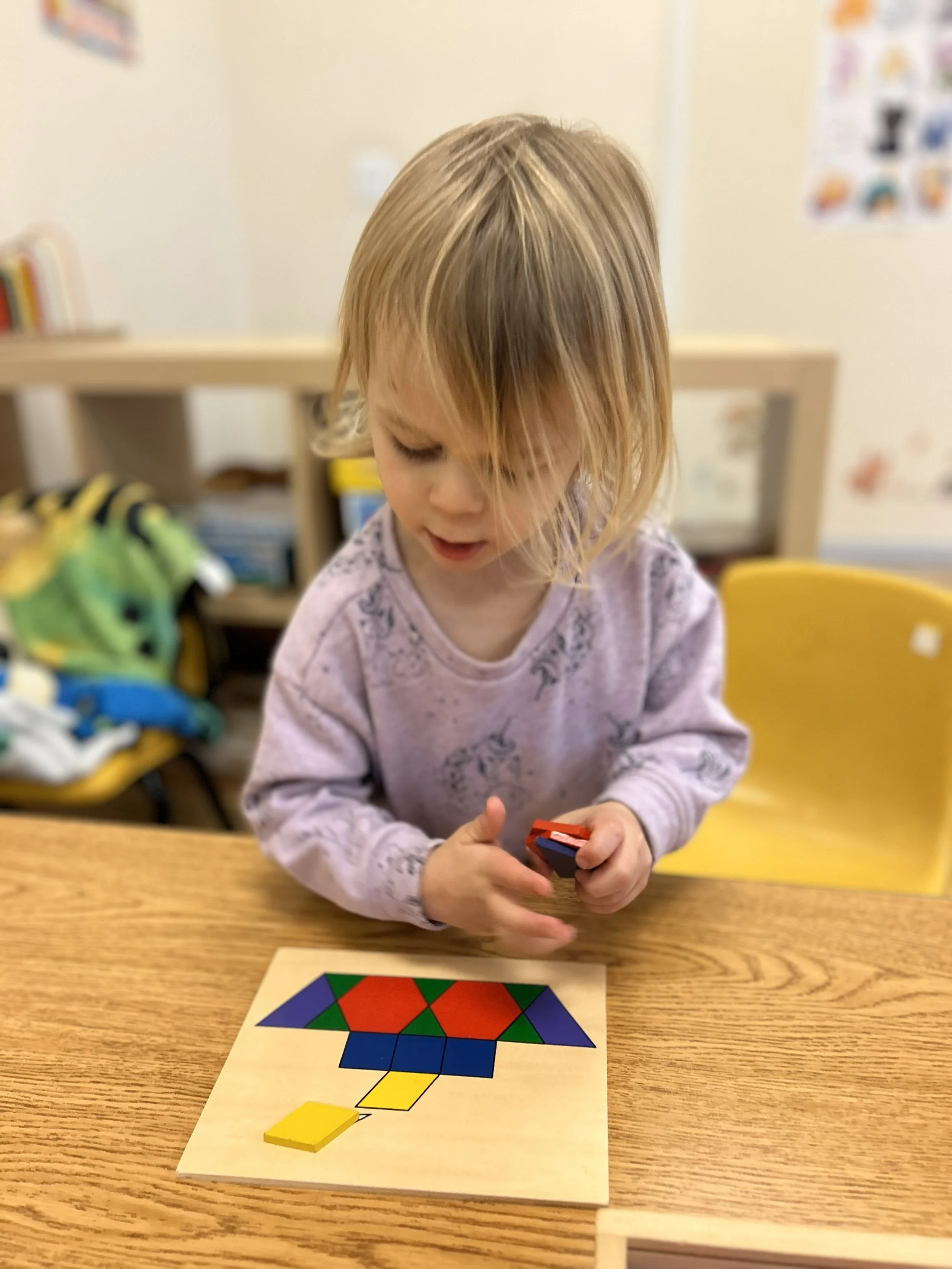 Children are warmly welcomed into the classroom and supported as they transition from home to school. This gentle start includes self-selected activities such as puzzles, building blocks, books, drawing, and manipulatives. Teachers greet each child individually to ensure a smooth start to the day.